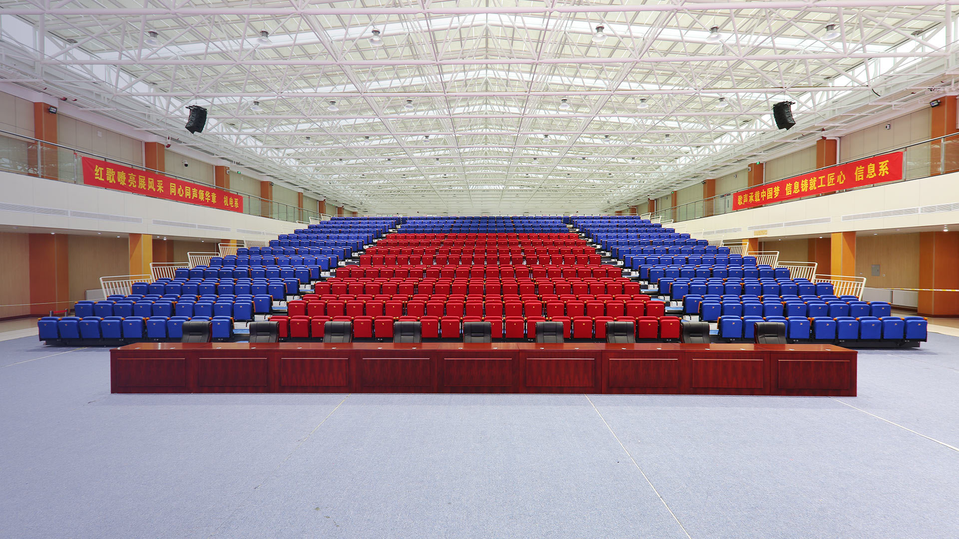 禮堂座椅多數由椅座、椅背、扶手、站腳、寫字板構成。一般情況組成結構一般為鋼木結構或鋼塑結構。適用在禮堂、影劇院、會堂、報告廳等場所。在使用時應有良好的視線,便于維修和清掃,使用時應舒適,使人不易疲勞。